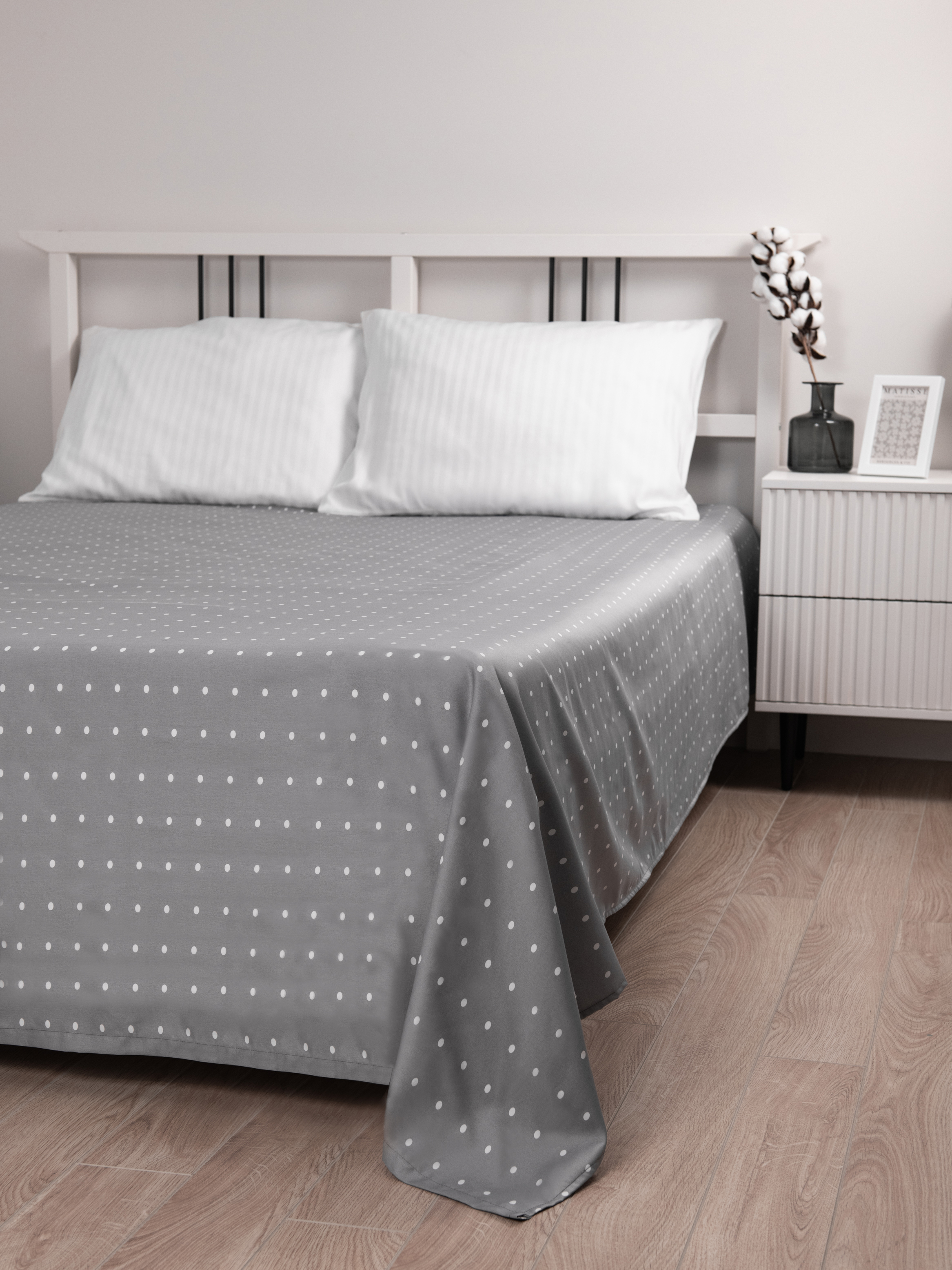 ODA Простыня стандартная, сатин серый в точку